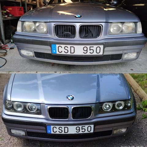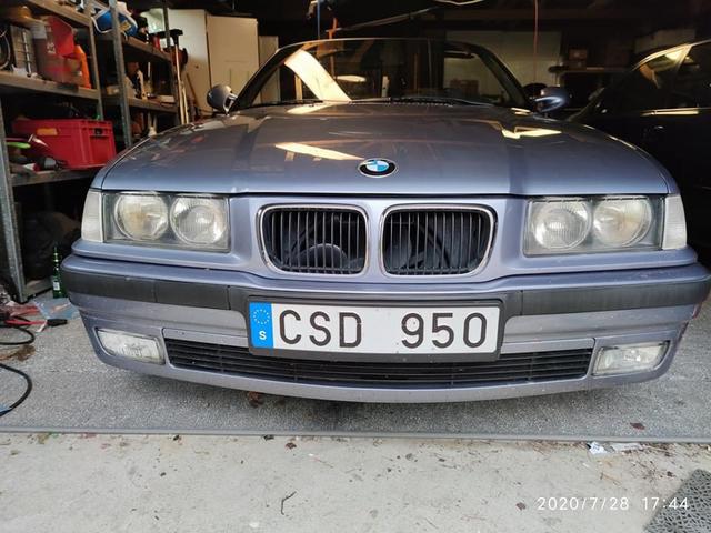 Efter par månaders sökning efter rätt objekt så köpte jag denna i torsdags osedd! En god vän åkte först från Uppsala och tittade på en röd 325:a i Vetlanda, men säljaren visade sig vara totalt oseriös och hade ljugit om massa saker som jag hade frågat honom så det blev inget affär på den bilen! Fick bli plan B då i dessa corona tider var det dåligt med tåg som gick hemåt mot Uppsala där min vän bor! Hade sett denna på blocket och gillade färgen skarpt! Bilen fanns i Nässjö så det blev en bussresa dit och köp av denna! Fick hem bilen i lördags och är nöjd! Lite tråkigt att det blev bara en 320 men jag hade bara krav på sexa, jag saknade motorljudet när jag hade min 318 E30 cab!