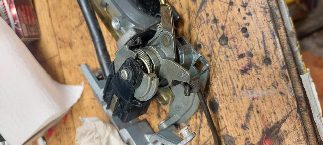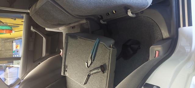 Har haft ett problem att lösa men inte så prioiterat. Höger baksäteshalva har inte gått att fälla. Låset har gått för trögt så att öppningsarmen av nån lättmetalegering gått av. Försökt att öppna med polygrip men det gick för trögt. Nu kom jag på att det gick att skruva in det plastklädda stoppmuttrarna på baksidan. Nytt försök och se där nu öppnade det sig. Det satt för mycket i spänn och då kärvade låset.