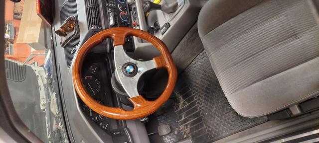 En vän tyckte jag behövde en träratt och efter lite modifieringar av Rattnavet till OMP ratten så satt den på plats.