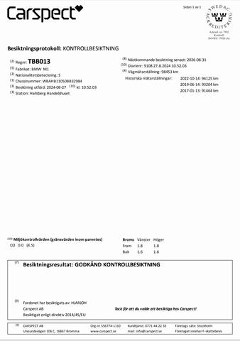 Sista besiktningen innan 10.000 mil.?