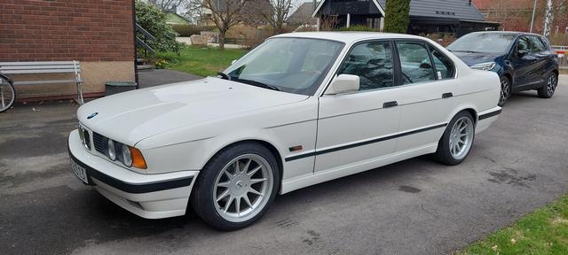 Hämtade hem E34 från mitt hyrda garage, dags att ge batteriet ett par dygns laddning , praktiskt att ha en bil som inte behöver ställas av utan kan köras hem när vädret tillåter . Sitter ju dubbfria vinterdäck på just nu.