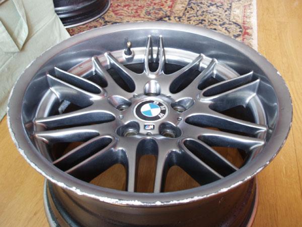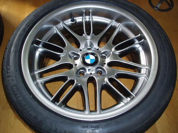 I veckan som kommer så väntar jag också in en stor glädje, nämligen mina nyinköpta M5 fälgar. Jag köpte en uppsättning M5 fälgar utan däck på blocket för ngn månad sen. 3 av fälgarna var i fint skick, inte nyskick men okej. En av de bakre fälgarna var dock kraftigt kantskrapad runt om. En av framfälgarna hade blivit omlackad av Intera av den förra ägaren (försäkringsärende) och jag tyckte inte riktigt att fälgen hade samma nyans i lackering som de andra....hmmmmm...vad göra? Jo, eftersom jag är lite av en perfektionist sa fanns det bara en sak att göra....skicka alla fyra fälgarna ner till Fälgfixarna i Helsingborg. De har fått i uppdrag att reparera fälgarna och lackera om dem i strikt original kulör "chrome shadow". De ska dessutom sko dem med nya fräscha Michelin Ps2:or i original dimension. Man kan väl säga att jag är minst sagt förväntansfull :)