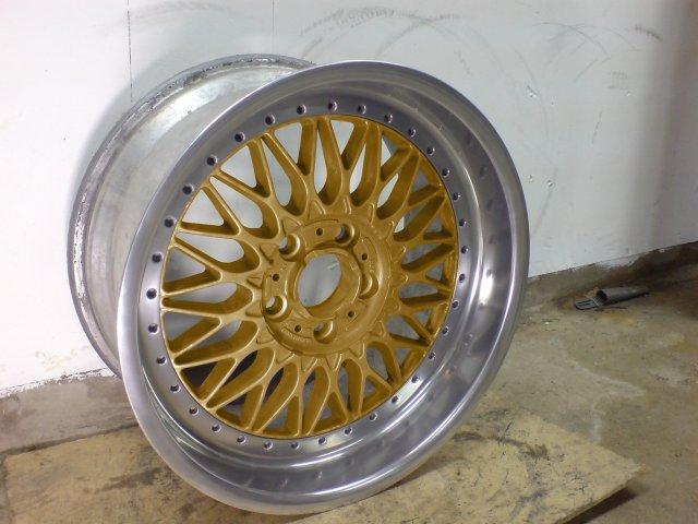 Tanken är den att fälgbanan ska poleras blank och fälgcentrum pulverlackeras i guld även splitskruvarna kommer bli guldfärgade. Tror att det kan bli snyggt.