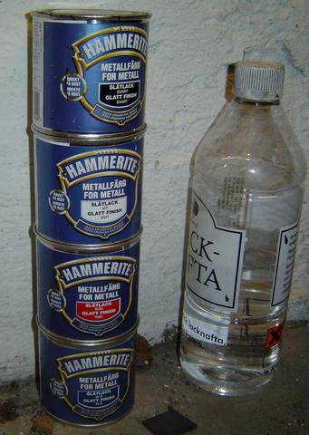 Bromsoken var ju lite trista att titta på och nått måste man ju ha att grejja med när det inte går att köra med bilen. Så jag åkte och handlade färg och blandade den vita med den blå 50/50 för att få fram den ljusblå kullören.