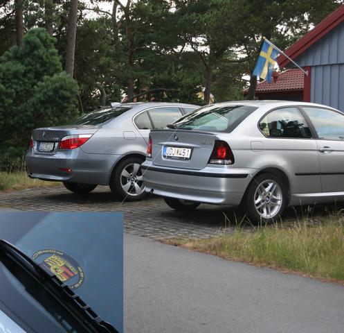 Idag såg jag en annan udda syn i ett välbärgat område söder om malmö, sommarhusets parkering pryddes av 2 helfräscha bimmers men det som gjorde mig glad och avundsjuk var det diskreta märket i båda bilarnas bakruta, En diskret påminelse om att dom har det väldigt skoj även när dom inte kör BMW, vissa är gud extra god mot..