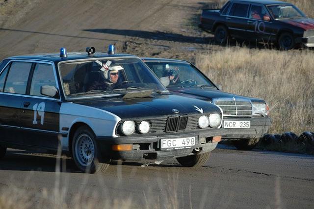 Vi körde väl rätt mycket tuffare med bilen dom sista timmarna och vågade ganska mycket mer, en del ville inte bli omkörda och försökte både med tråkiga prejningar och plötsliga hårda inbromsningar men vi lät oss inte hållas detta till trots utan kom förbi dom flesta relativt lätt, dels har vi en hel del erfarenhet men bilen i sig är fel bil att buffla med för våra medtävlande, stenhård och tung som den är står så förlorar många en kamp ute på banan.