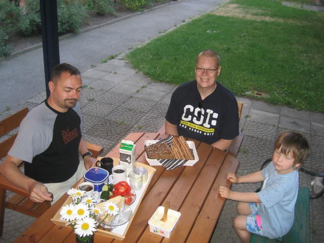 Vaknar lite halvseg vid halv åtta, promenixgänget hade redan hunnit iväg så jag sätter mig och skriver ett par rader om gårdagen och inmundigar lite välsmakande java. Efter en riktigt smarrig gemensam frukost smider vi planer för dagen, det lutar åt Adenau för att lösa lite praktiska saker.