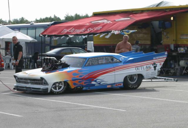 Andy Robinson tävlar i Pro Modified med hans Studebaker, enligt mig den snyggaste bilen för dagen (bild 11). Lite småmeck får man räkna med mellan racen, här några bilder på Michael Nords team tror jag det var (Bild 12-16).