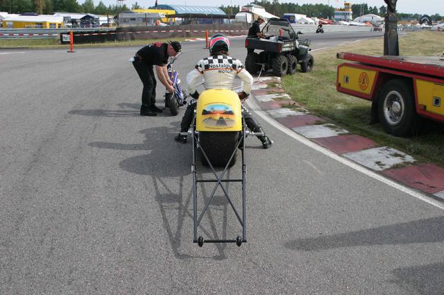 Juniorklasserna körs med Briggs&Stratton motorer och här kvalificerar man på reaktionstid. Ibland behövde de små ”monstren” en liten knuff tillbaka (bild 5).