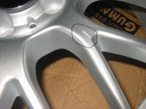 Bif lite bilder på fälgarna från Gummihuset. ser inte så snyggt ut? Se inringade skador.