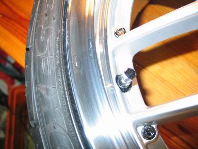 Här kommer den sista bilden på en av de skadade fälgarna, man ser tydliga jack efter verktyget som de drar upp luftventilen med. Så här arbetar inte en seriös däckfirma, man skickar ej iväg en så pass skadad fälg ut till kund.