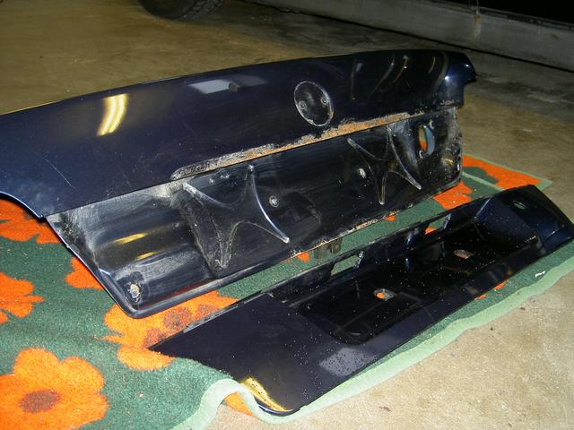 Nu kom jag till problemet med rosten på bakluckan under chromlisten men lite finurlighet så var luckan bortplockad och delad på. =)
