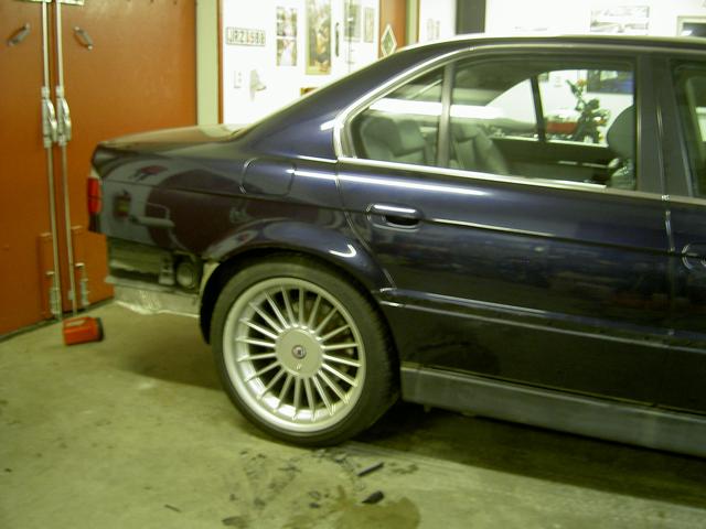 Nu är det snart dax för lack ;) Spoilern bak och alla listerna på dörrarna osv är borttagna och en grönplåt monterad, Ska bara byta Alpina 20" till 16" orginal hjul med ms däck :P Sedan är det bara att åka :P
