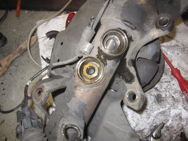 Lite bonus blev ju att när Wölkes skulle kontrollera hjulinställningen fram och bak hittade de glapp i bärarmen bak både vä och hö sida. Måste mao byta dessa också. Kanske passar på att köra en service 2 samtidigt när man ändå ligger ner.......