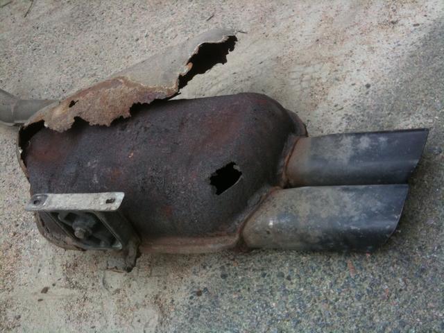 Passade på att besiktiga bilen i veckan. Hade förträngt att vänster bakljuddämpare redan förra året såg bedrövlig ut. Borde ha bytt den innan besiktningen och naturligtvis fick jag anmärkning på den. Bilen i övrigt var i finfint skick, så det var bara att beställa en ny ljuddämpare från BMW. Har inga speciella rabatter på BMW men de var säkert 500:- billigare än Schmiedmann.