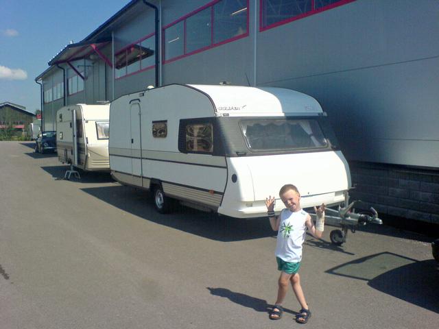 Det var en dålig start och en dålig känsla för den vagnen. Vi frågade handlaren om han kunde tänka sig att ta tillbaka den om vi tog en annan. Det var inga problem. Vi såg ut en Solifer 550 Jubilee -90 som absolut var adekvat för våra behov. Ingen ren barnkammarlösning men överbädd i bak gör att den fungerar lika bra. Och man inser att skall man ha regelrätt barnkammarlösning i en 550 så blir det övriga utrymmet lite väl komprimerat. Solifern är betydligt luftigare och har också en del andra fördelar. Exempelvis är dom kända för att vara lätta att dra, och det var verkligen skillnad.