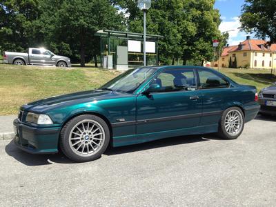 Sidolister M Vita blinkers runt om 17" Radialeker Brilliantline med 225 fram på 7,5" fälg och 245 bak på 8,5" fälg Komplett Alpinainredning i tyg, dörrsidor med träinlägg M ratt Träinredning Kromade dörröppnare (inne) M-växelspak med belysning Armstöd i skinn Monterat svart innertak Konidämpare med H&R fjädrar Powersprint rostfritt system från kat Orginal M3 spegler Orginal M3 front |