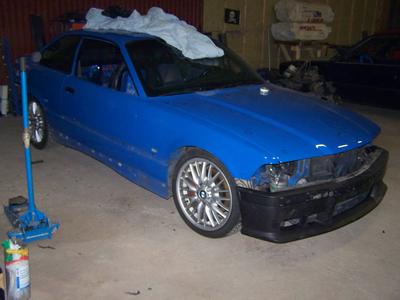 bilen är helt nedplockad för att lackeras om och byta front vinge till orginal