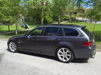 Vi letade ny andrabil då vår 320i E90 passerat 15 000 mil. Var egentligen ute efter en 325i E91 men då den tilltänkta bilen hann bli såld på vägen till handlaren så surfade jag runt på Blocket och hittade denna 330i hos en handlare i samma stad istället. Blev affär direkt :-)