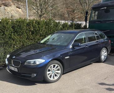 BMW 530i touring 11/11. Lackering: A89 Imperialblå briljanteffekt metallic. Klädsel: Läder Dakota Venetobeige (LCDF). Dekorlister: Ädelträutförande Ask ådrad mörk högglans. |
