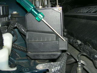 Stoppa ned en skruvmejsel i slitsen vid kontakten.