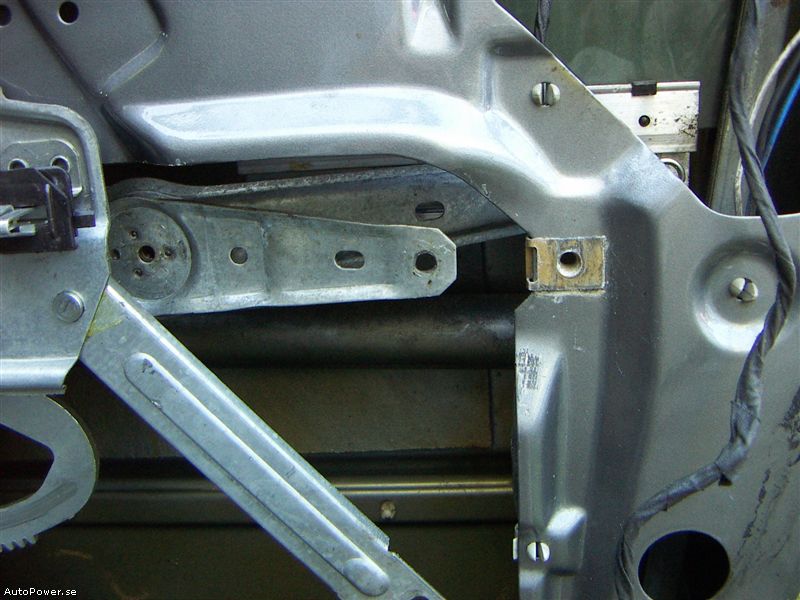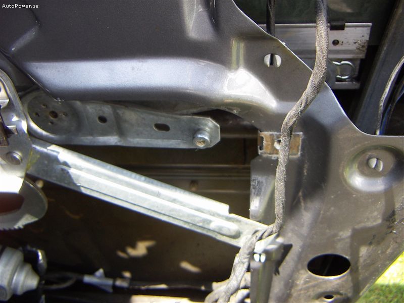Skruva fast skruven med brickorna i hålet efter kulleden med en låsmutter på baksidan. Obs brickan vara i rännan när du drar fast den. Nu är det bara att justera vinkeln på fönstret och prova elhissen. Och sedan sätta tillbaka dörrsidan.