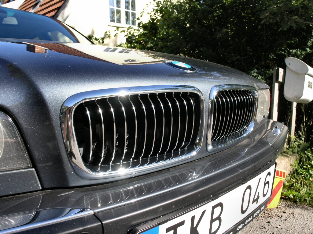 E38:or med M73-motorn (750i/iL och L7) kom standardutrustade med helkromade kylargaller, att jämföra med gallren på övriga E38:or där endast kanten är kromad. Att även stolparna är kromade ger i min mening ett tuffare utseende som tar bort lite av modellens påstådda "gubbighet". Redan när jag köpte min 740iA '99 var kylargallren och motorhuven i ganska dåligt skick på grund av stenskott. Efter en omlackning av motorhuven blev det tydligt att även "njurarna" måste bytas. Så varför inte byta upp sig till de helkromade gallren på samma gång?