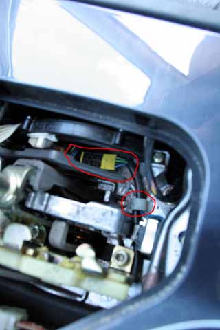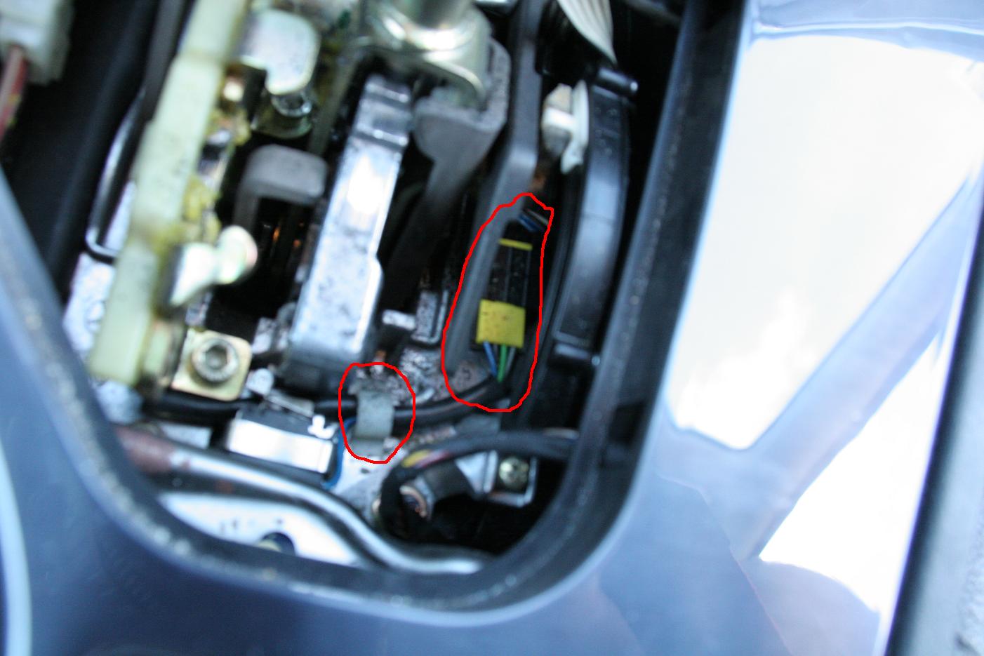 Det är dom två mittre kontakterna, i det här fallet (540iA -97) grön och svart kabel som skall skiftas. Tryck ned stiftens spärrar med en smal mejsel eller liknande och ta ut dessa. Sätt in grön där svart varit och tvärtom. Återmontera i omvänd ordning. Klart!