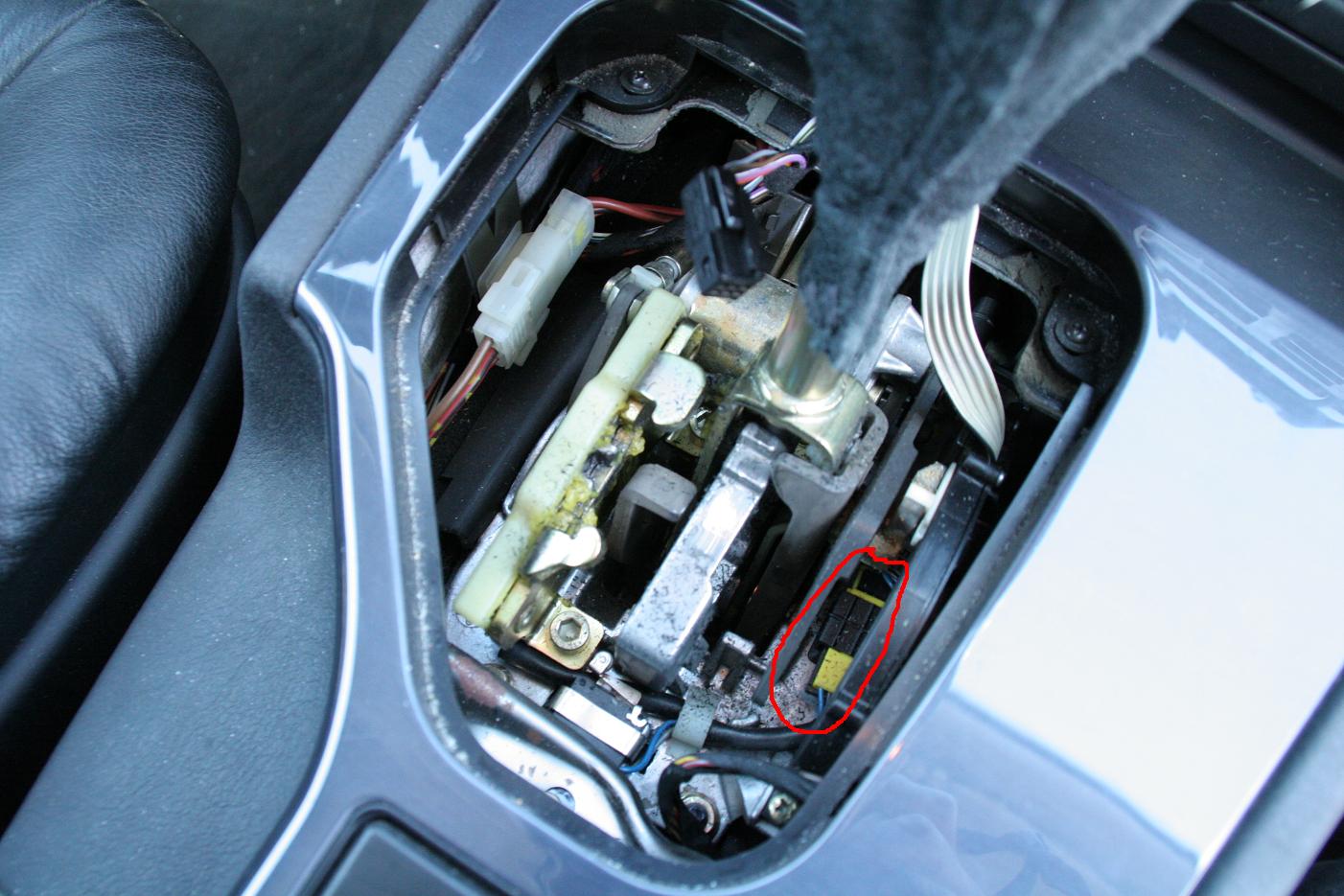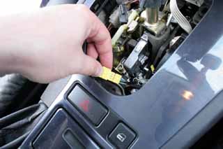 Lokalisera den gula kontakten till höger om växelväljarspaken.