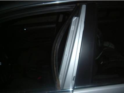 Gummilisten går att dra upp helt s(e bild nedan) men är då svår att få dit. Jag drog bara upp den så långt det behövdes för att lossa skruvarna.