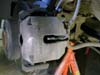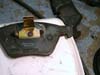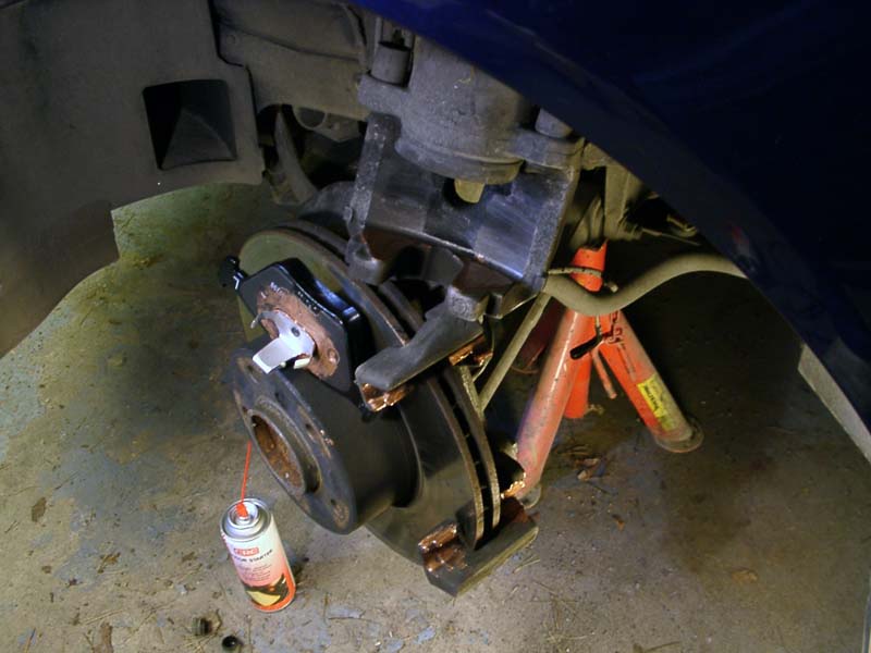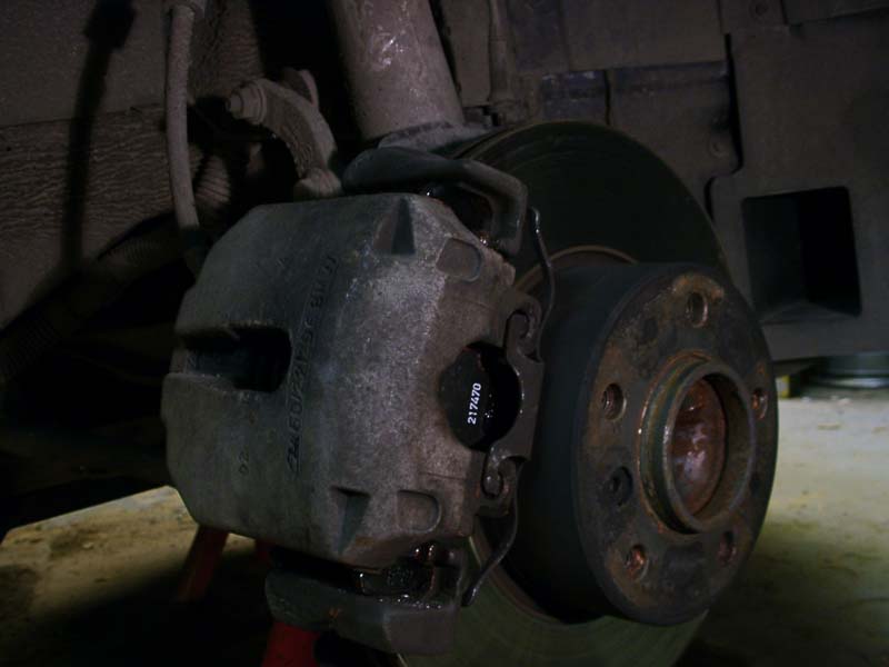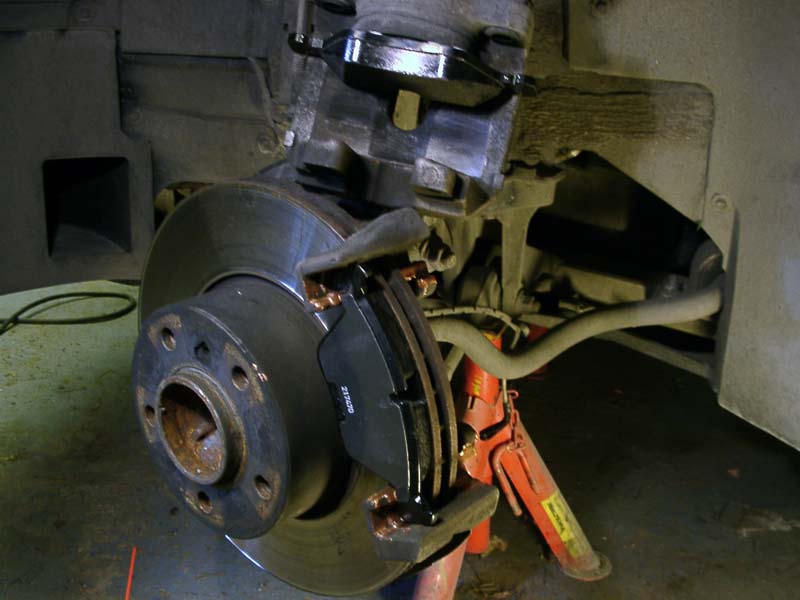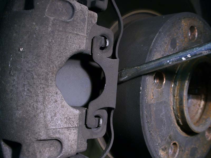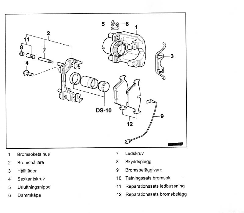 Att byta bromsbelägg är ett enkelt jobb som de flesta händiga bilägare klarar att utföra själv. Visst bromsar är en säkerhetsdetalj och är man det minsta osäker efter denna beskrivning så ska man inte ge sig på att göra det själv. Det krävs inte några specialverktyg utan det som åtgår finns i de flestas verktygsutrustning. Ett spärrskaft med en insexhylsa 7 mm. Bild 1 Värmebeständigt kopparfett speciellt för bromsutrustningar finns i de flesta biltillbehörsaffärer och mackar. Bild 2 Ett tunt siliconfett för att smörja ledskruvarna (detalj 7) brukar kunna följa med ibland vid köp av bromsbelägg. Bild 3 En stor skruvmejsel, stålborste, andningsskydd vid rengörning om så önskas. Någon typ av rengöringsmedel förtunning eller startgas. Pallbockar, en livförsäkring som man inte klarar sig utan. En scannad detaljbeskrivning översatt till svenska från min verkstadshandbok. Bild 4 Börja att ta bort den vänstra kupéfilterboxen, för under där döljer sig bromsvätskebehållaren och för att det inte ska bli sprängfullt i behållaren när man trycker tillbaka okens kolvar så lossar jag locket och lägger några trasor under, då bromsvätska fräter på lack om det skulle rinna över. Bild 5 När bilen är står stadigt och ordentligt med nyckeln i rattlåset så hjulen går att vrida så börjar vi med att ta skruvmejsel modell större och bryter med hjulnavet som mothåll bort hållfjädern. Bild 6 Peta bort platspluggarna för att komma åt ledskruvarna. Bild 7 Lossa och ta bort dem med spärrskaft och insexhylsan. Bild 8 Ledskruvarna borttagna, de ska vid montaget smörjas med ett tunt silikonfett. Bild 9 Bryt lite grann på beläggen med mejseln så de kan röra sig. Oket lossat och upp och nedvänt, dessa belägg kör man ca 1000 mil till på, men man lurar sig, de ser mera slitna ut när det sitter på plats. Dessa har rullat 7663 mil. Bild 10 Pressa tillbaka kolven med belägget kvar med en tving tex. Bild 11 Inspektera att gummiskyddet runt kolven är helt, annars ska det ovillkorligen bytas. Rengör ok och bromshållarens glidytor med en stålborste, använd munskydd då det dammar en del... Det är dock en del skillnad på tjocklek på ett nytt belägg. Bild 12 Ett fabriksmonterat Juridbelägg. Bild 13 Observera att belägget på kolvsidan är rotationsriktningsmärkt och se till att de hamnar på rätt hjul. R=höger hjul L= Vänster hjul. Bild 14 På vänster hjul sitter det en kabel för varningsindikering. Här är den nya, men den behöver jag inte i detta fall då jag är lite tidigt ute med beläggbytet. Bild 15 Vänster hjuls ok visar placeringen av indikeringskabeln som kommer att återanvändas. Lirka bort den försiktigt men lossa hållfjädern först. Bild 16 Efter rengörning ska alla glidytor och beläggens baksida som ligger mot kolv och ok smörjas med kopparfett för att det ska glida lätt och slippa bromsgnissel. Bild 17 Hur man än gör så hamnar det alltid lite fett på skivan, se absolut till att ta bort detta med förtunning eller startgas som är ett utmärkt rengöringsmedel. Placera beläggen så här och återmontera alltsammans. Bild 18 Klart så här långt. Bild 19 Tryck sakta ner bromspedalen med korta pumpningar tills den känns stum. Kolla därefter så att det går att snurra skivorna med bromsen släppt, så att inget låst sig. Montera hjulen och släpp ned bilen, kolla nivån i bromsvätskebehållaren och återmontera kupéfilterboxen... Om man kört så långt så att slitagevarnare indikerat och man bytt kabeln måste man återställa indikeringen på följande sätt: Lägg tändningsnyckel i läge 1 i minst 30 sekunder utan att starta bilen, då raderas felregistreringen i minnesbanken. Och bromslampan slocknar när bilen startas på normalt vis. Vid provkörning så kommer pedalen att kännas svampigt i början innan beläggen sliter in sig. Jag brukar åka ut och bromsa in beläggen med några hårda inbromsningar från ca 100 km/h. Men INTE i snabb följd utan att bromsen får svalna ordentligt mellan bromsningarna. Efter en 5-6 bromsningar så brukar det kännas helt ok i pedalen i de flesta fall. BMW E39 tillhörde en av de enklare varianterna att byta brombelägg på ska jag tillägga. |