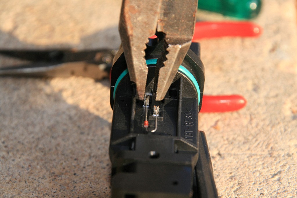 sensorn är inte fastlödd utan sitter fastklämd i två kontaktklämmor.