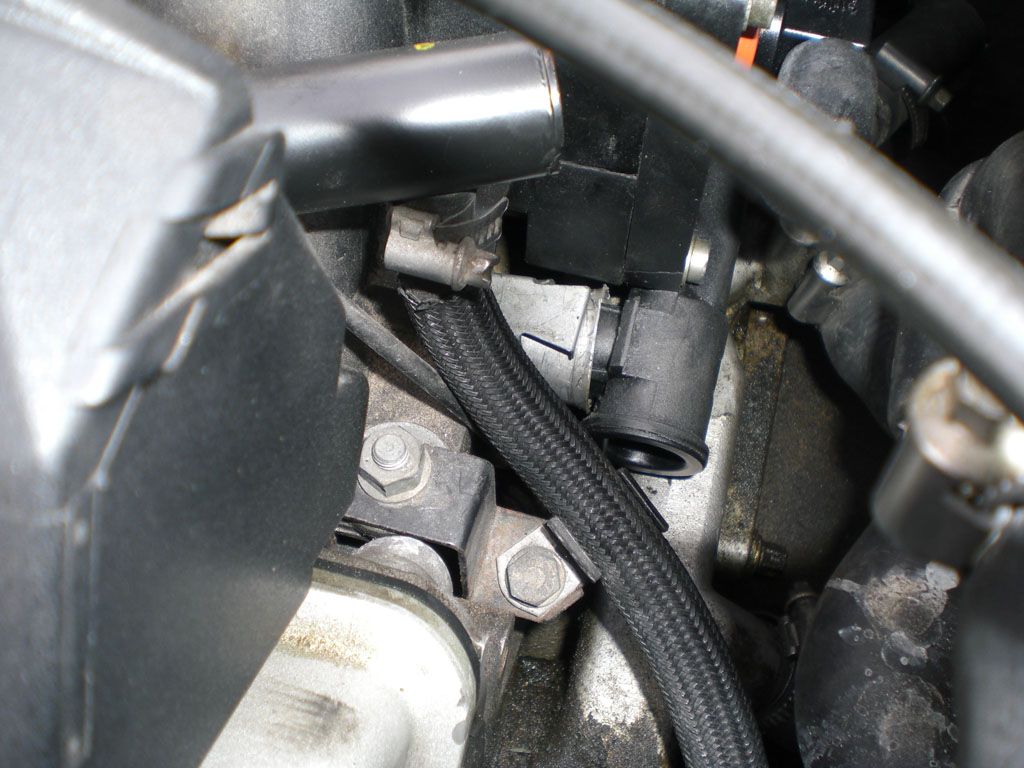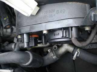 4) Lyft upp och vik undan expansionskärlet samt lossa på den stora runda kontakten. Lossa även på plastclipsen som håller kabelhärvan. Vik åt sidan. Se bild 5 och 6. Detta gör vi för att få så mycket utrymme som möjligt. Tro mig, här är det trångt ;-)
