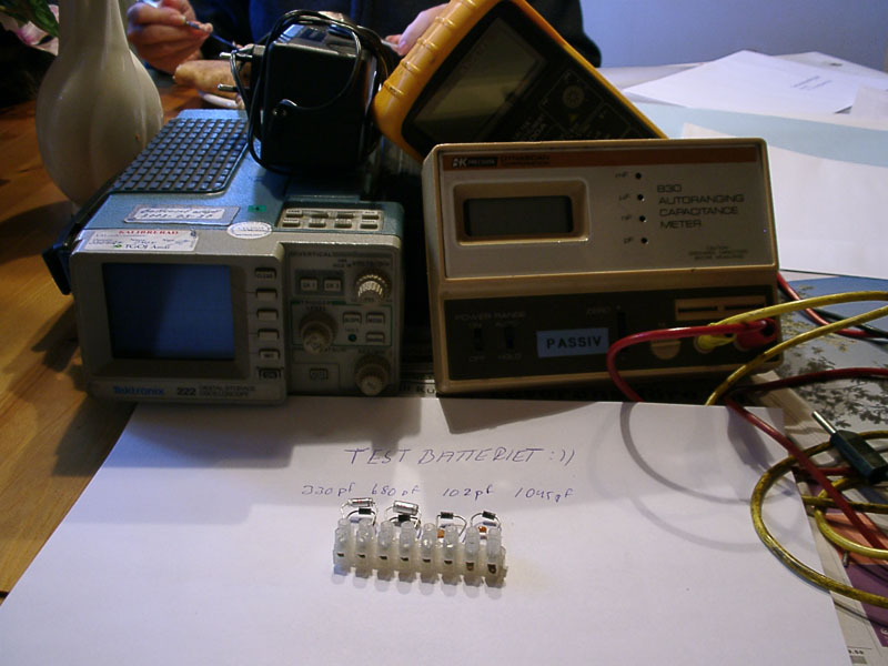 Sedan får man ta en kapacitansmätare och göra en polvänd mätning mot diodens spärriktning, så att man mäter enbart sensorslingan och fick då ett värde på ca.1400pf obelastade och 0pf belastad så fort jag rörde vid sensorerna exakt lika som vid mätning live i systemet med occiloscopet.