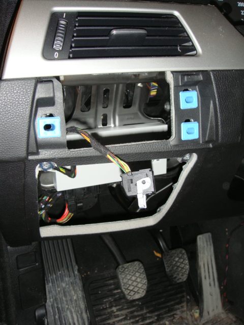 1. Lossa förvaringsfacket. Sitter med två torx. Det blir lättare att dra kabel samt demontera ljuskontrollen då.