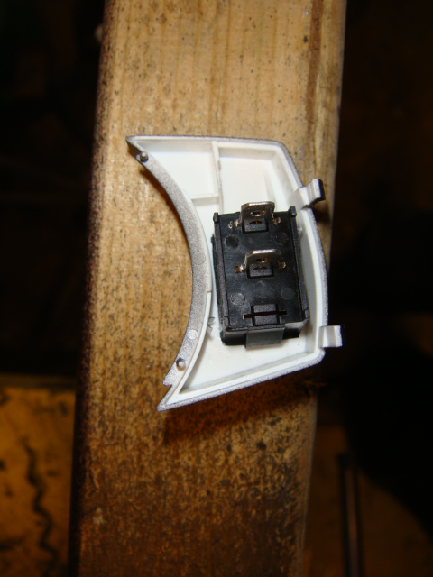 2. Ta bort ljuskontrollen. Den sitter med friktionsstift och trycks ut från insidan. Ta bort kabeln.
