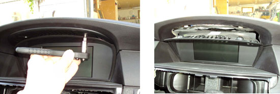 - Ta en spårmejsel eller liknande och bänd försiktigt ut den långa dekorlisten med ACutblåsen i. Linda gärna en trasa eller lite tejp runt mejseln så den inte repar ngt. När man får in fingrarna bakom är det bara att dra försiktigt utåt bit för bit så släpper den till slut.