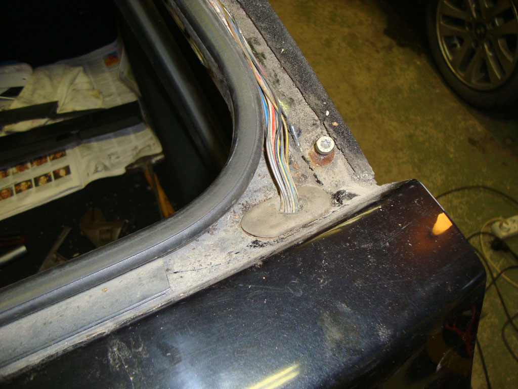 Ta loss täckkåporna för kabelstammarna för bakrutan. Torx 20.