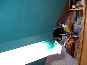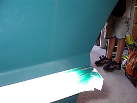 Jag gjorde tavlan att spraya på grundfärgen och det hade säkert blivit bra om jag hade maskerat ordentligt runt den blästrade ytan istället för att "dimma" ut det.