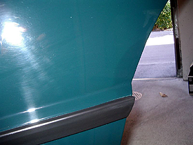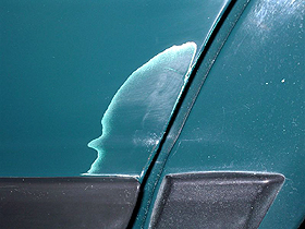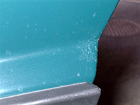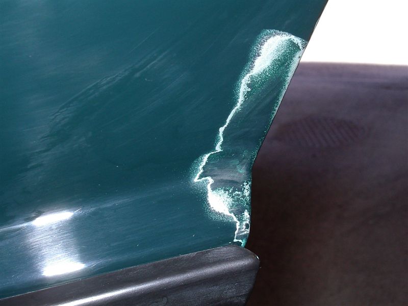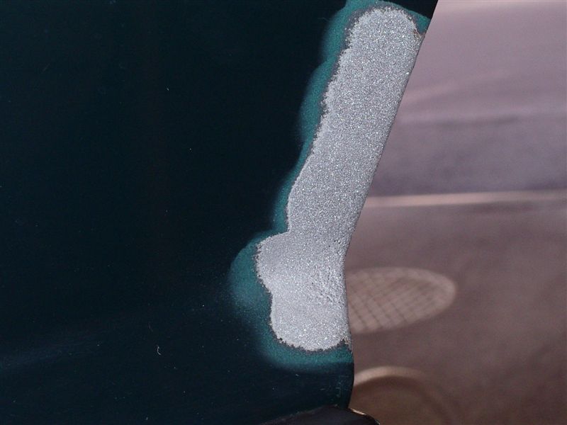 | På min bil är det vänster bakdörr som är objekt för detta GDS-reportage. Begynnande rost syns som bubblor på lacken.