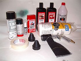 | Jag använde först Sonax flytande rubbing för att polera ut lackskarven och för att få bort färgdammet som alltid blir när man sprutlackerar.