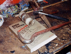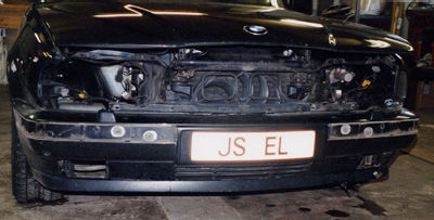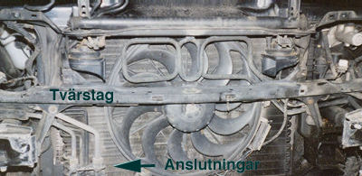 Objekt. BMW 530iAT-93 Utseende före och förhoppningsvis även efter detta ingrepp!!!! ![]() Eventuella hjälpmedel!!! ![]() I våras när värmen slog till igen då visade det sig att ACCn inte ville fungera på ett tillfredsställade sätt. Alltså raka vägen till kylreparatören för läck sökning,för det är ju oftast en läcka som gör att trycket i systemet minskar eller försvinner helt så att kompressorn inte kan starta.Det är inte så mycket man kan göra själv när det gäller köldmediet. Sagt och gjort, på med fyllnings/tömningsaggregatet hos reparatören och i med en illgrön färgpatron för att underlätta läcksökningen, starta upp anläggningen och kolla var läckan finns. Nästan alltid finns den att hitta i kondensorn i fronten. Kondensorn är av aluminium och plast och sitter utsatt till, framför allt för vägsalt som gör att materialet ger upp efter en tid, men det kan även vara ett stenskott eller någon annan yttre påverkan. I mitt fall var det en lödning i de många små krökarna på vänster sida sedd framifrån som läckan kunde hittas, gröna små bubblor trängde fram så det var bara att suga ur köldmediet och vaccumsuga för att jag skulle kunna operera fritt med demontering och montering av den nya kondensorn. Kondensor införskaffades från grabbarna på Bildelsimporten snabbt och enkelt, det finns också ett torkfilter att byta. Jag hörde mej för om detta och fick till svar att det inte var nödvändigt att byta. Då var det bara att börja skruva. Jag tänkte visa hur jag gjorde,det finns kanske fler sätt, men jag tyckte detta var bäst.