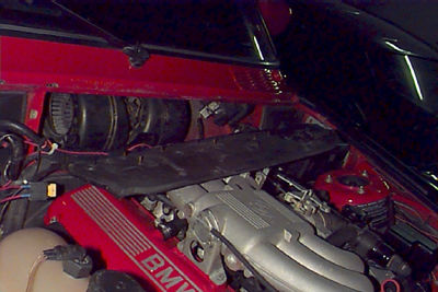 Öppna motorhuven, skruva bort täckpanelen som sitter längst in, under rutan, se bilden nedan. Panelen ligger på insuget.