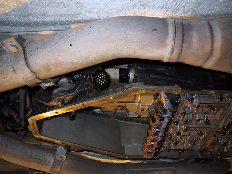 | Återmontera den sista givaren, den som sitter i bakkant av växellådan. Glöm inte att fästa upp dess kabel i de fästanordningar som finns på växellådans innervägg.