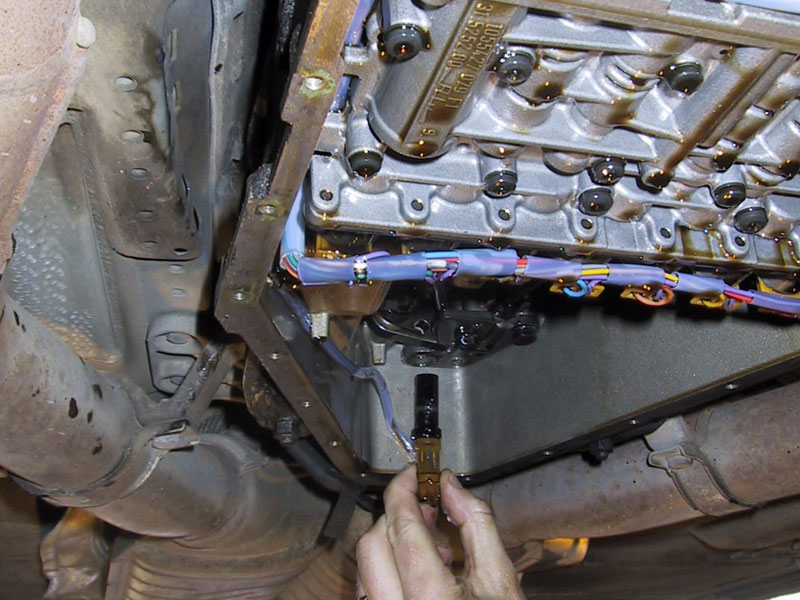 | Dra ut givaren rakt nedåt. Lossa kabeln från växellådshusets vägg så att den hänger direkt från ventilhuset.