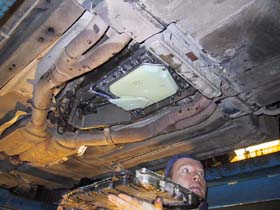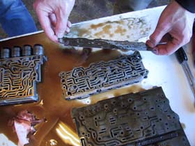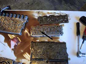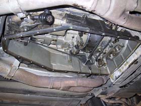 | Bilden visar hur växellådan ser ut med tråget nedplockat.