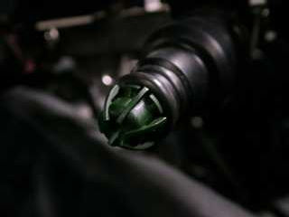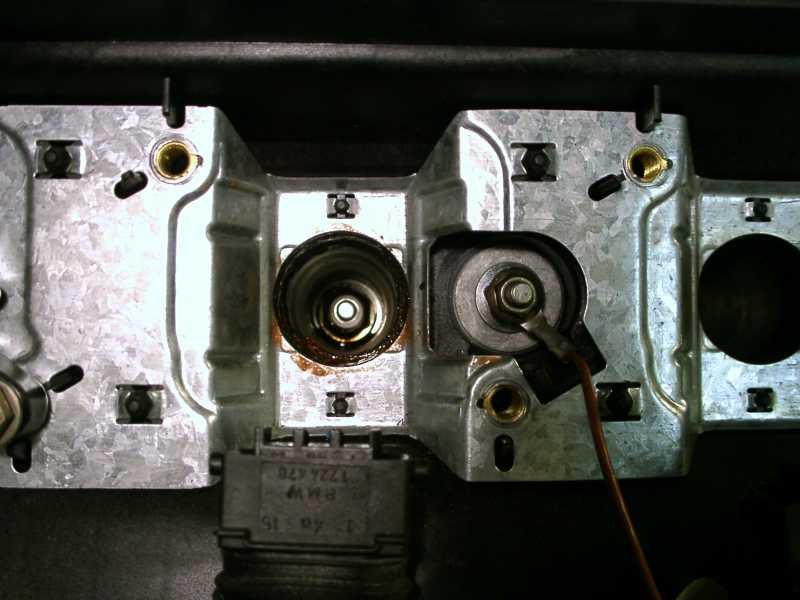 Bild 4. Här ser man att det finns lite olja i botten i 3 ans tändstiftshål, inga större mängder, utan