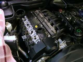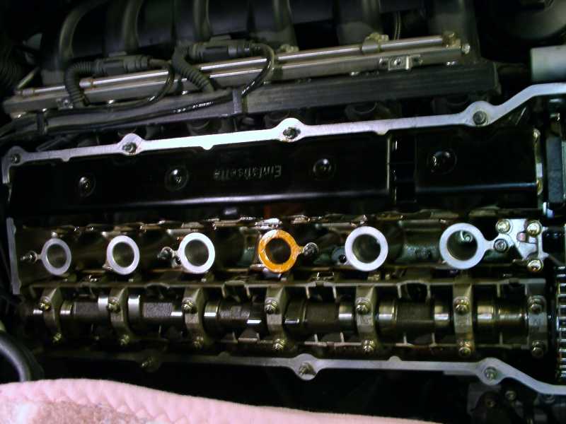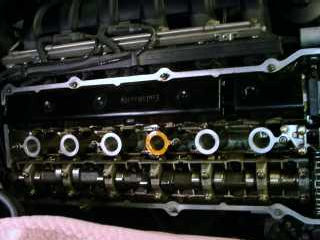 Bild 1. Upptäckte vid Insp 2 för ett år sedan att jag hade ett oljeläckage i 3 ans tändstiftshål. Åtgärdade det då med silikon , och det har funkat bra,men kände att det är dags att gör en rejäl kontroll och byta packning så att man slipper bekymra sig över semestern, då bilen brukar få rulla många mil: