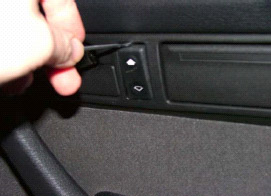 Börja med att ta av brytaren i bilen med hjälp av en smal flatmejsel. Ta av kontaktstycket.