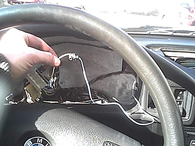 På många E34 så är inte CheckEngine-lampan inkopplad trots att platsen finns i instrumentet. På USA-varianten var de dock inkopplade. Anledningen till att man inte kopplade in dem på Europavarianten var enligt vissa rykten att lampan tändes lite för lätt och kunde också blinka till. De finns ytterligare en trevlig funktion med lampan, genom att trampa gasen i botten 5 gånger precis efter att man slagit på tändningen så börjar lampan blinka ut eventuella felkoder som är satta. På så sätt kan man kolla felminnet själv utan att betala ca 500kr till verkstaden. Jag bestämde mig därför för att koppla in den berömda CheckEngine-lampan. Efter lite sökande på nätet hittade jag denna sajt med elscheman till våra bilar: http://www.autolib.diakom.ru:8000/CAR/BMW/ Där fann jag att pinne 8 i databoxen skulle vara Check Engine och gå till instrumentet på min bil, en M50 -92. På M30 så verkar det vara pinne 15 istället. Då schemat över instrumentet verkar lite svårtydbart på den sajten så hittade jag Pin layouten istället: http://www.e34.de/tips_tricks/bctips/bctips-2.pdf Där kan man se att pinne 3 i den vita 26-poliga kontakten på kombiinstrumentet ska gå till databoxen. Då var det dags att bege sig ut i bilen! Koppla av batteriet! Ut med instrumentet, man behöver inte ta av ratten! Se bild 1 (jag ber om ursäkt för den dåliga bild kvalitén) Den vita kontakten får man plocka sönder. Då pinne 3 på min bil inte var kopplad alls så fick jag ta och slakta en datorkabel för att få något som passade på pinnen. Se bild 2,3,4 Då var det dags för databoxen! Pinne 8 var inkopplad på min bil och det gick en grå kabel från den precis enligt schemat, men det fanns två likadana gråa kablar till! Efter lite undersökning kom jag fram till vilken jag trodde det var och efter att ha mätt så blev det bekräftat! Jag försökte följa vart kablen gick men jag gav upp då jag inte ville riva ner hela bilen, så det fick bli en halvtaskig lösning: En strömtjuv! Se bild 5,6,7 Efter lite kabeldragning så var det dags att koppla ihop mina två tåtar, Värt att notera är att det går +12 från instrumentet till databoxen. Se bild 8 Ok Nu var det bara att sätta tillbaka instrumentet igen och testa! Det fungerade perfekt när man slår på tändningen så tänds lampan och när man startat så släcks den. Blinktestet fungerade perfekt en lista vad det betyder finns här: http://www.bimmer.se Bilen som detta gjordes på var en BMW 525i Touring -92. Och den uppmärksamme såg kanske att instrumentet kommer från en M5. Nästa jobb blir att få oljetempmätaren att fungera. Tänk på att det är lätta att förstöra elektriska komponenter så var försiktig! Jag tar inget som helst ansvar om något går sönder när ni följer beskrivningen utan allt görs på egen risk som det brukar heta. Frågor kan ställas på lars@suk.se så svarar jag i mån av tid. Lycka Till! | Bilderna är klickbara